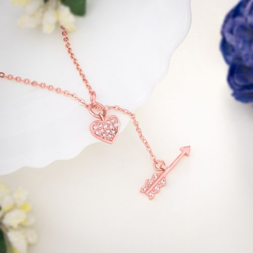 Ladies Rose Gold Plated Heart Shape Pendant With Chain