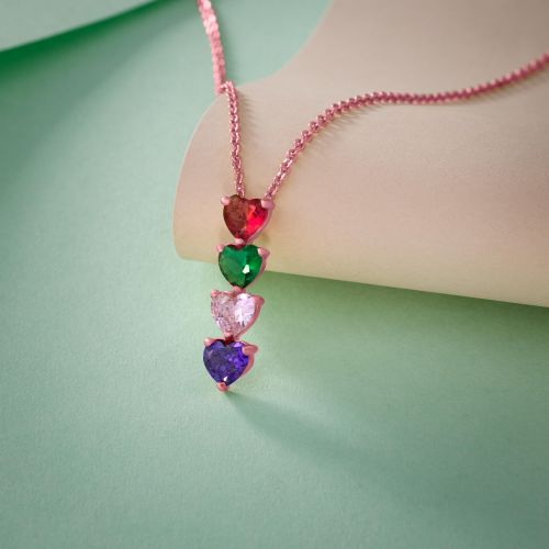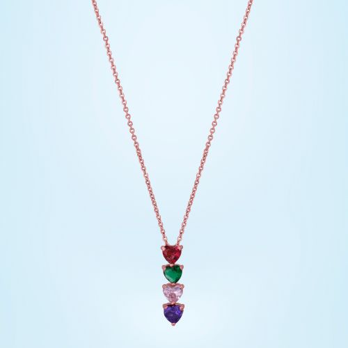 Ladies Rose Gold Plated Four Heart Gemstone Pendant With Chain