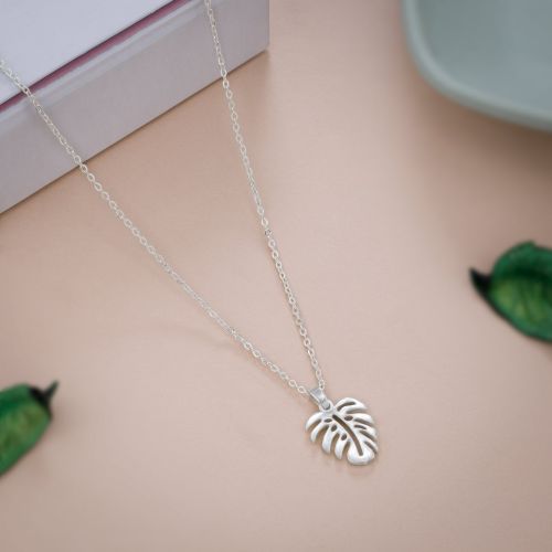 Ladies Leaf Design German Silver Pendant With Chain