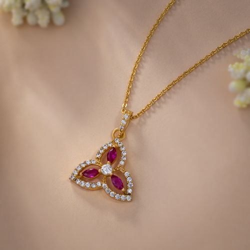 Ladies Trinity Triangle Gold Plated Pendant With Chain