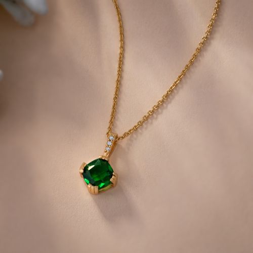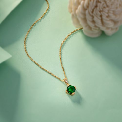 Ladies Stylish Emerald Gold Plated Pendant With Chain