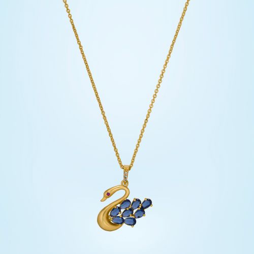 Ladies Graceful Swan Gold Plated Pendant With Chain