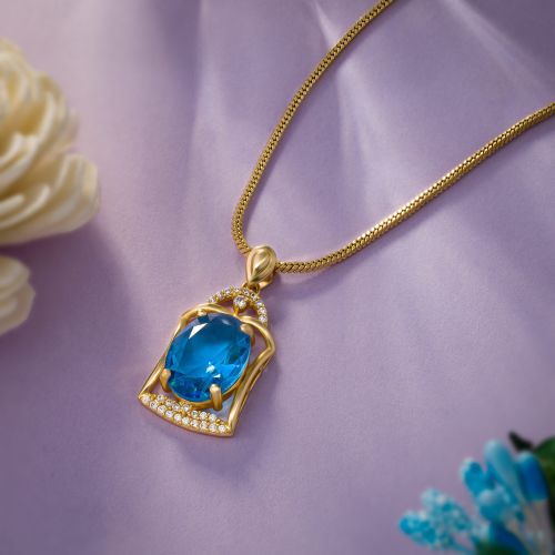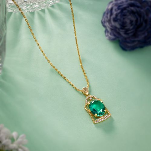 Ladies Designer Emerald Lantern Gold Plated Pendant With Chain
