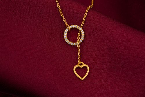 Ladies Designer Love Drop Gold Plated Pendant With Chain