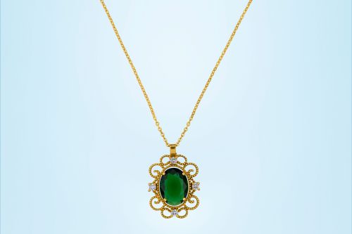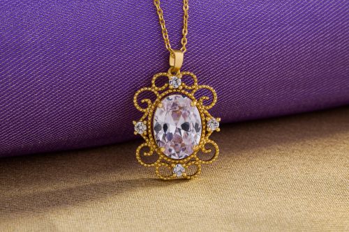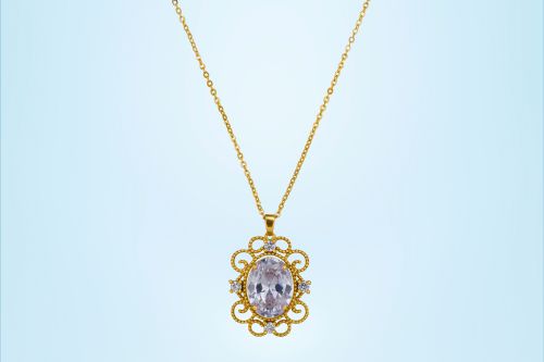 Ladies Royal Sapphire Gold Plated Pendant With Chain
