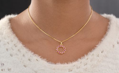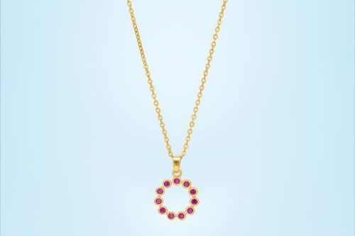 Ladies Fancy Round Design Gold Plated Pendant With Chain