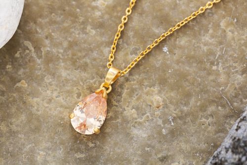 Ladies Fancy Teardrop Gold Plated Pendant With Chain