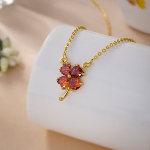 Ladies Lucky Clover Gold Plated Pendant With Chain