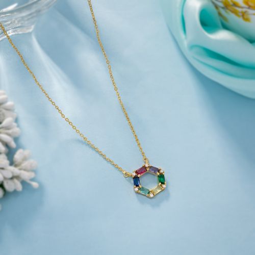 Ladies Prismatic Harmony Gold Plated Pendant With Chain